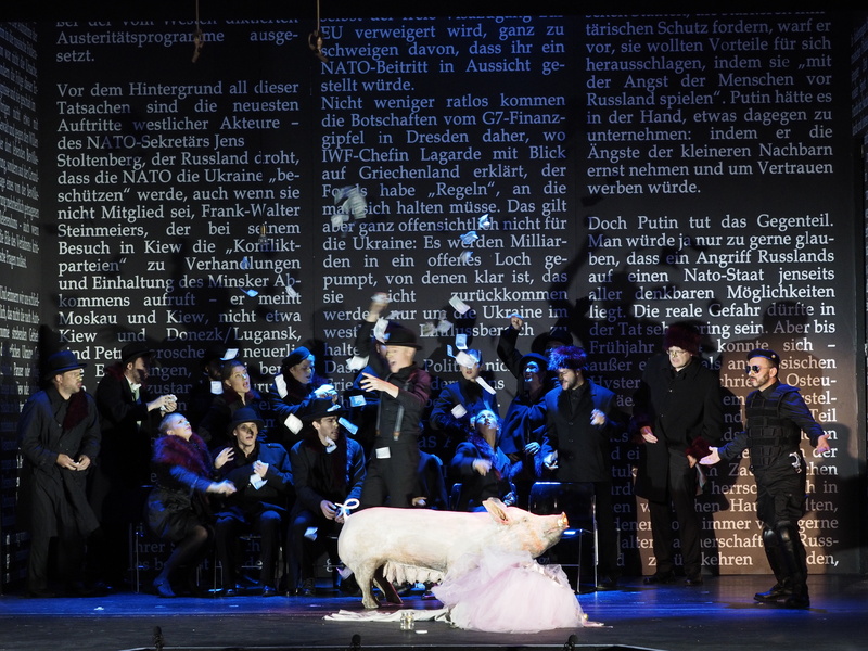 …Mit starken szenischen Statements macht Regisseur Matthias Oldag deutlich , mit Terror ist kein Staat zu machen. Er iszeniert intensiver die Verrohung der Gesellschaft, Gruppenwahn und Brutalität in Zeiten der Repression, als